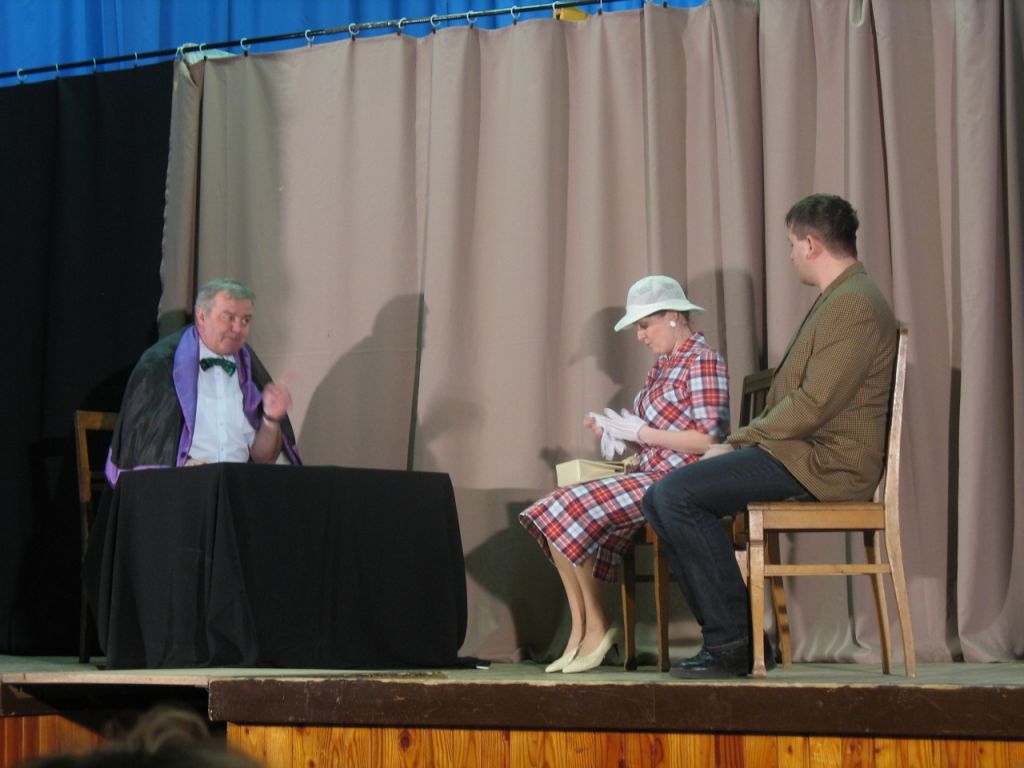 Každoročně k nám přijíždí se svým repertoárem divadelní soubor z Dřevohostic.I letos nás pobavili třemi krátkými příběhy z partnerského života ve hře s názvem "Manželské etudy". Za svůj výkon byli herci odněněni velkým potleskem. Je milé, že letos na jejich divadelní vystoupení přišlo víc než 80 platících diváků. Už teď se těšíme, co vtipného si pro nás připraví na příští rok.