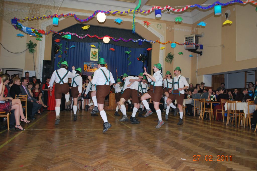 Ples se konal v sobotu 26.února 2011. K tanci i poslechu hrála již tradičně skupina Blue Band Company. Sokolovna tentokrát doslova "praskala ve švech". Po zahájení plesu jsme mohli vidět vystoupení paršovského kroužku country tanců "Happy Chick". Dále byl večer zpestřen předvedením zajimavé ukázky z bojového umění Ju Jutsu. O půlnoci jsme mohli přivítat skupinu bavorských "nosáčů", přišli přímo z Octoberfestu, aby nám ukázali jak se tančí v Bavorsku. Sklidili velký aplaus a zmizeli. Nakonec se z "nosáčů" vyklubali paršovští Sokoli, kteří každoročně na hasičský ples připravují půlnoční překvapení. Sál zůstal zaplněn až do konce plesu a podle toho soudím, že se všichni návštěvnící dobře bavili.
