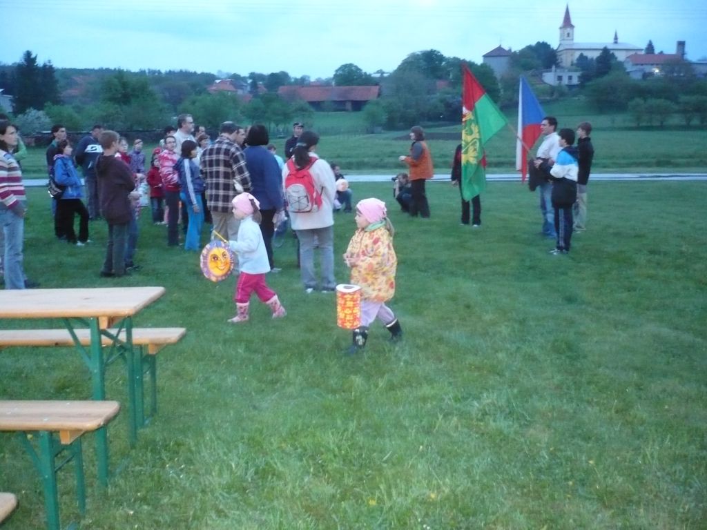 Letošní "lampioňák" byl naplánován na pátek 4.května, ale počasí pořadatelům nepřálo a proto byl odložen na sobotu 5. května. Sraz účastníků lampionového průvodu, který se koná tradičně k výročí osvobození naší obce a ukončení 2.světové války, byl v 19.30 hodin u budovy obecního úřadu - těsně před jeho začátkem však přišla krátká bouřka. Naštěstí účastníky neodradila a "za sucha" průvod prošel obcí a na místním hřišti byl zakončen slavnostním zapálením vatry.