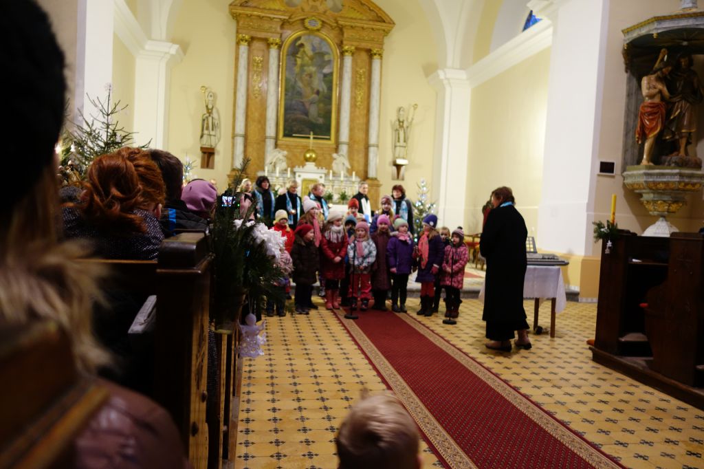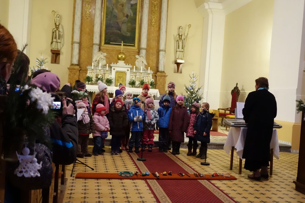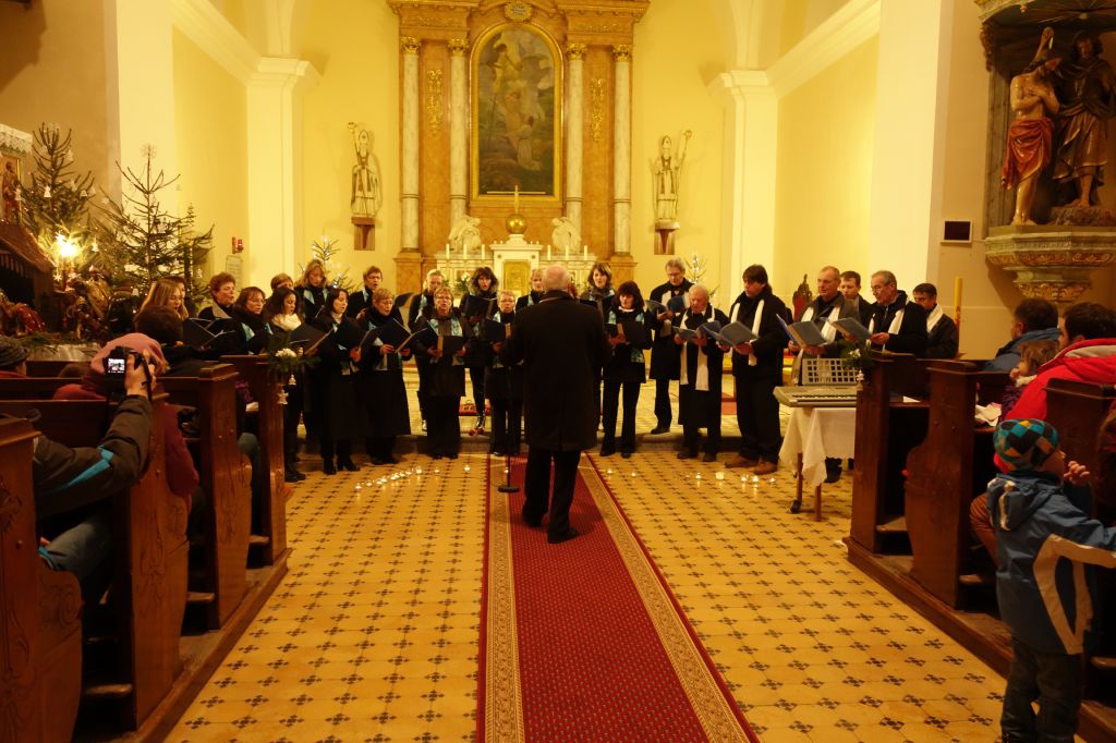 I přes velmi větrné a chladné počasí jsme se se čtvrtou neděli adventní sešli a zaspívali si koledy. Při zpěvu nás na klávesy doprovodila paní M.Gadasová a hlavně děti, které hrály na triangly, chrastítka, bubínky a tamburiny. Nechyběl ani tradiční punč pro dospělé a ovocný čaj pro děti. Všichni kdo přišli,neodcházeli domů s prázdnou, mohli si odnést radost ze setkání s přáteli a blížících se vánočních svátků a také Betlémské světlo.