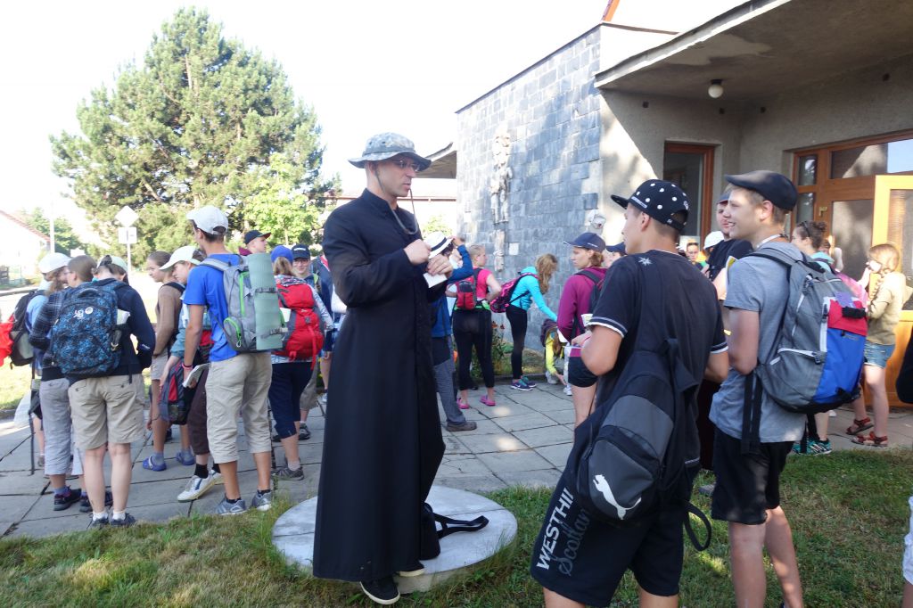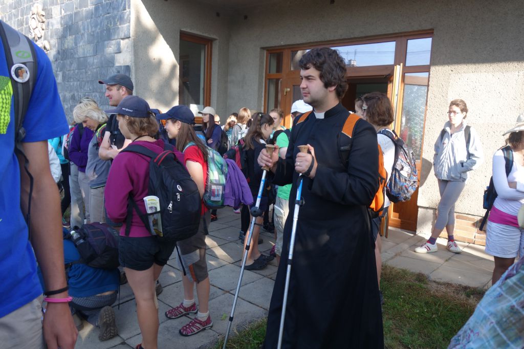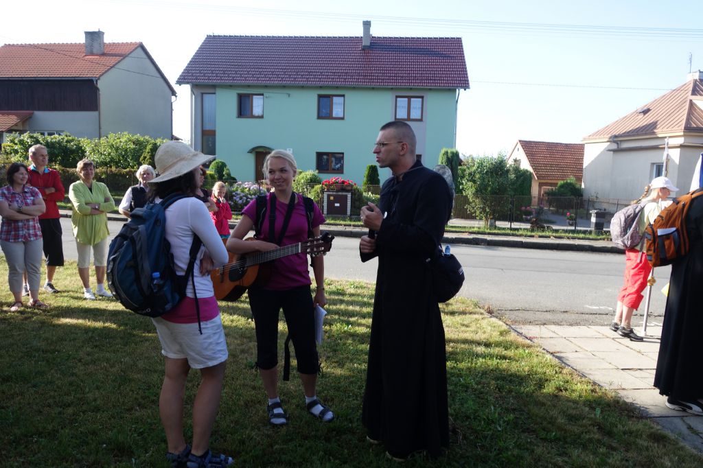 Také letos jsme se těšili na naše "staré známé", mládež i dospělé,kteří každoročně putují pěšky 150 km z Opavy na Velehrad s pátrem Bartłomiejem Blaszkou z farnosti Hněvošice. Tentokrát přišli do Paršovic ve středu 8.7.2015 a cestou z Bělotína do Paršovic porádně promokli :-) . Po krádkém odpočinku a občerstvení se pro poutníky i místní občany večer v kostele konala přednáška P. Jana Larische, Th.D o pronásledování katolických kněží a řeholníků v době okupace a za II.světové války. Vě čtvrtek ráno po mši svaté jsme se s našimi milými hosty rozloučili a popřáli jim šťastnou cestu na Velehrad.